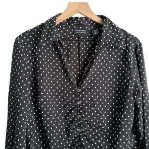 New York & Company City Stretch Polka Dot Button Up Blouse Office Workwear Sz 14