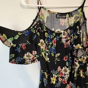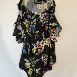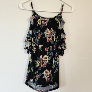 New York & Company Cold Shoulder Floral Print Ruffle sleeves size S