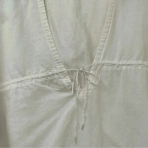 Linen Blend Beachy Hoodie Top V Neck 3/4 Sleeves Sz L