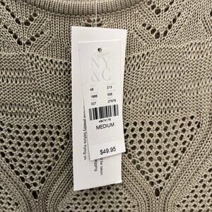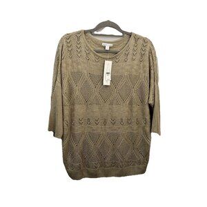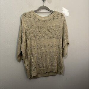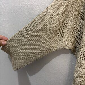 New York & Company Dolman Pointelle Sweater Open Knit Tan Size M