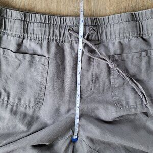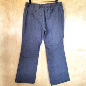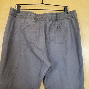 Comfortable linen-cotton blend pants in a steel gray. Drawstring at waist, relaxed fit and wider leg