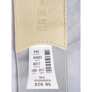 New York & Company Elastic Cinch Belt White & Blue Double Buckle Size M/L