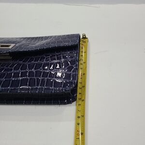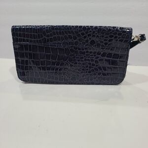 New York & Company Elegant Navy Crocodile-Embossed Clutch wristlet