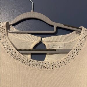 Chic cream top by New York & Company. Features a sparkling embellished neckline. Ideal for a stylish look.