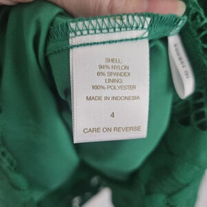 Introducing the Eva Mendes for New York & Company Sleeveless Lace A-line Dress, a stunning addition to any woman's wardrobe. This dress, available in size 4, is part of the exclusive New York & Company Eva Mendes collection. The dress features an elegant emerald green color that is sure to turn heads. Crafted with high-quality materials, the dress is made with a shell composed of 94% Nylon and 6% Spandex, providing a comfortable and flattering fit. The lining is made of 100% Polyester, ensuring both comfort and durability.The sleeveless lace design adds a touch of sophistication, making it perfect for special occasions or a night out. With its A-line silhouette, this dress flatters a variety of body types.Whether you're attending a wedding, a cocktail party, or a formal event, the Eva Mendes for New York & Company Sleeveless Lace A-line Dress is a versatile and stylish choice. Elevate your fashion game with this exquisite dress that combines elegance, comfort, and the signature style of Eva Mendes and New York & Company.