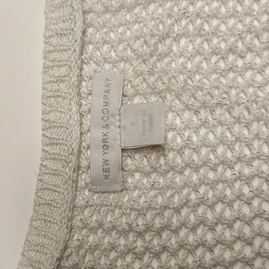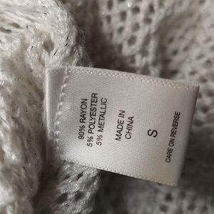 New York & Company Fishnet Top Size Small. White and has 5% Metallic sparkle. Great for summer wear. Fabric split on side easy on and off. See photos for measurements.