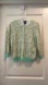 Lovely floral pastel colors cardigan 3/4 sleeves with ribbed trim & crystal like detail buttons