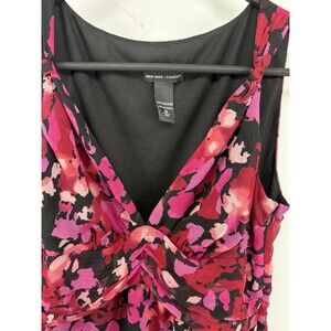 New York & Company Floral Dress V Neck Ruffle Sleeves Pink Size 10
