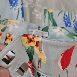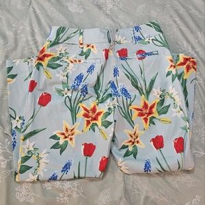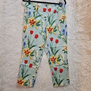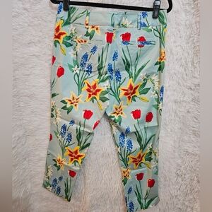 New York & Company Floral Print Capris - Red and Green on Light Blue Size 6