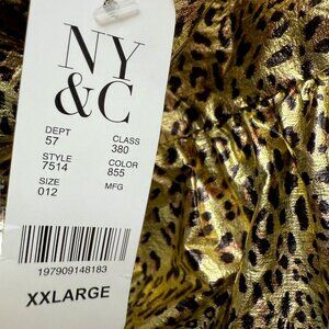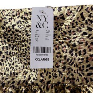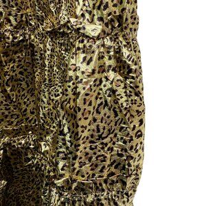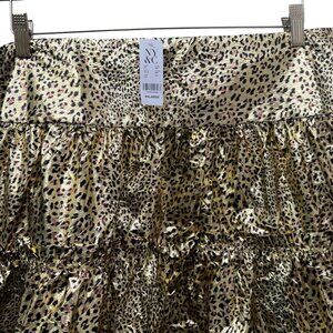 New York & Company Foil Leopard Print Skirt XXL Gold Metallic Tiered Ruffle