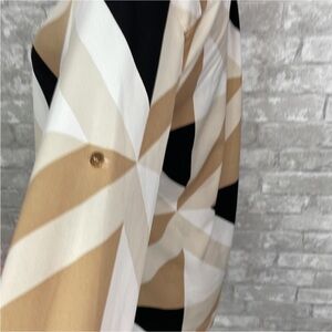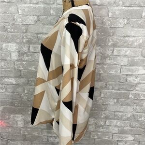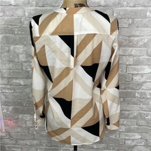 New York & Company Button Down Blouse White/cream/tan/black print Hidden button down Roll tab sleeves