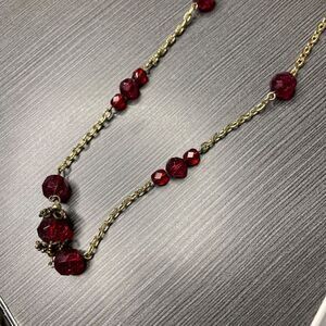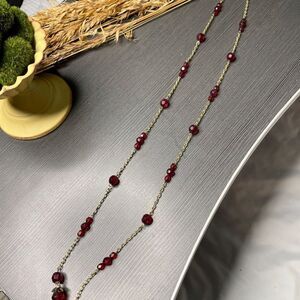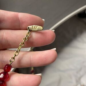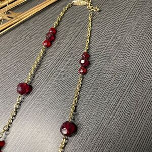 New York & Company Gold Tone Long Necklace w/ Red Beaded Detailing - OS
