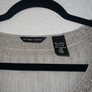 New York & Company Gray Lurex Embroidered V-Neck Blouse Size XS
