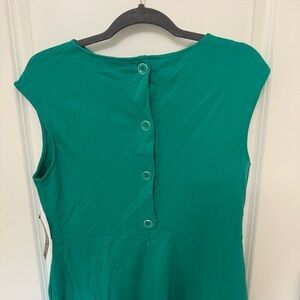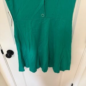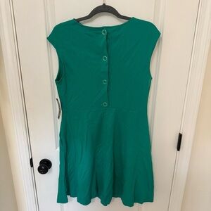 Stylish green mini dress with button-back detail. Perfect for any occasion.