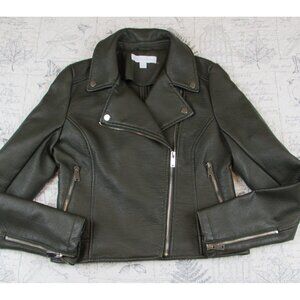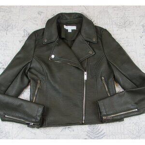 New York & Company Green Faux Leather Moto Jacket Women’s Silver Zip Biker XS
