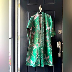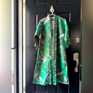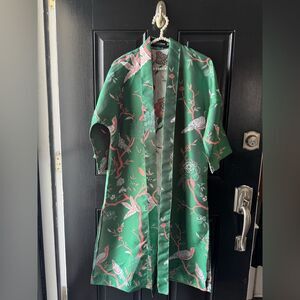 New York & Company Green Floral Satin Robe Jacket Size XS/S