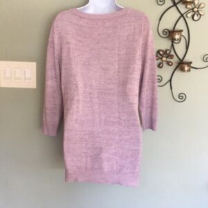 New York & Company Hi-Low Sweater with 3/4 sleeves. The color is lavender with sparkles. Use the second and last three pics for color reference. This sweater is NWOT. Never worn. Great neckline. Lightweight sweater would be great for layering. Well made sweater. Smoke free home. Ask any questions I am happy to help. Open to offers. Bundle for a special offer.