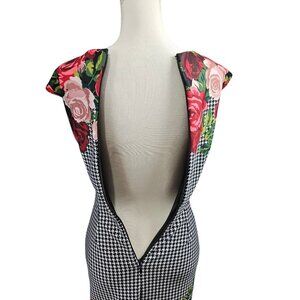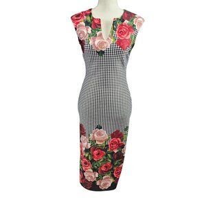 New York Company Hounds Tooth Floral Sleeveless Midi Sheath Dress Size XS