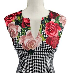 New York Company Hounds Tooth Floral Sleeveless Midi Sheath Dress