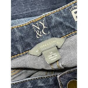 New York Company Jeans Women Size 14 Blue Curvy Bootcut Mid Rise DISTRESS HEM