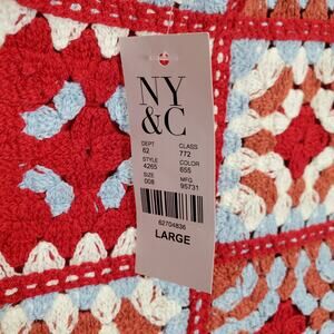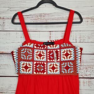 New York & Company L Cottage Ruffle Tier Dress Red Multi Crochet Top Flare Skirt