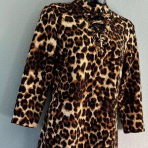 New York & Company Leopard Print Lace Front Dress Womens Size Medium 3/4 Sleeve