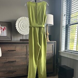 Sleeveless jumpsuit with waist tie. Elegant and modern style.