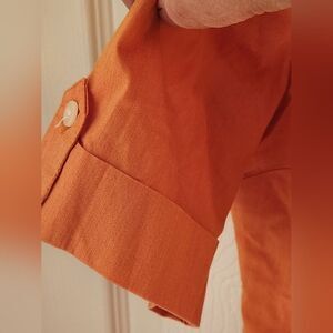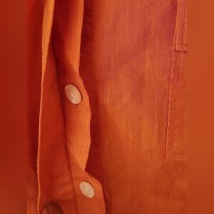 New York & Company M Orange Cotton Blend Shrtslvs Pockets Buttons Up Women Shirt