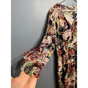 New York & Company Multi Color Paisley Long Sleeve Maxi Dress V Neck Size XL NWT
