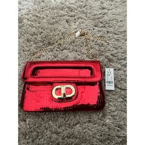 Gorgeous red leather clutch. It is brand new. Tags are still attached. It can also be used as a Crossbody because there is a chain that can be used. Perfect for upcoming holiday gatherings
