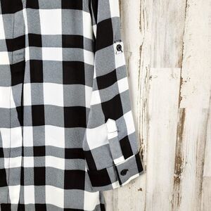 New York & Company Plaid Long Sleeve Button Down Shirt Black and White.