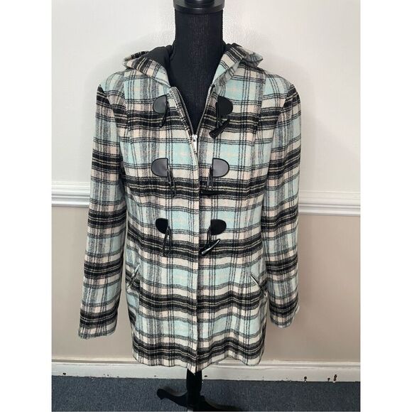 New York & Company Plaid Zip Up Peacoat Jacket Size Large