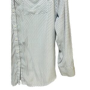 New York & Company Polka Dot Split Neck Tunic Shirt White Blue Women's Size Large