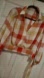 Stylish plaid blouse with a wrap design. Features red and yellow check pattern. Perfect for casual outings.