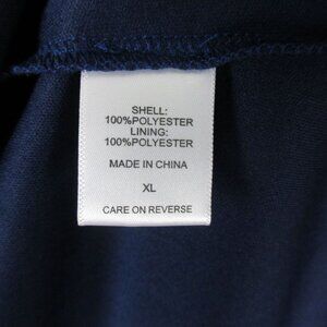 New Yok & Company abstract blue print, flowy maxi dress has statement balloon sleeves and a flattering twist at the waist, back elastic stretch at waist. Buttons down the front complete this shirt style.