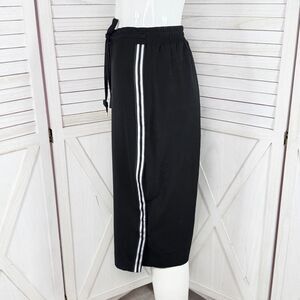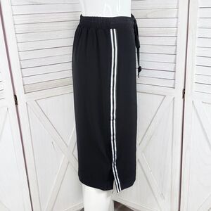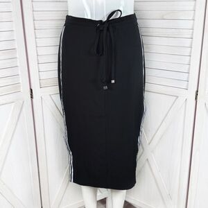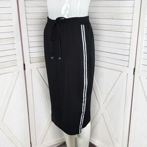 New York & Company Side Stripe Snap Slit Midi Pencil Skirt Black White XS