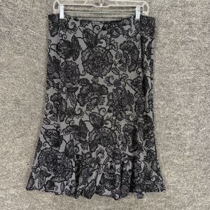 New York & Company Skirt Women L Large Gray Floral A-Line Midi Mid Rise Casual