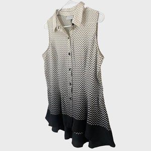 New York & Company Button-Up Sleeveless Ombre Polkadot Blouse Black & White
