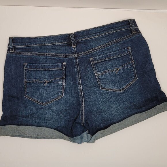 SOHO New York and Company Soho Blue Jean Mid Rise Roll Cuff Zipper Details Denim Shorts.