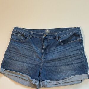 New York & Company Soho Women14 Jean Short High Waist Med Wash Stretch Normcore