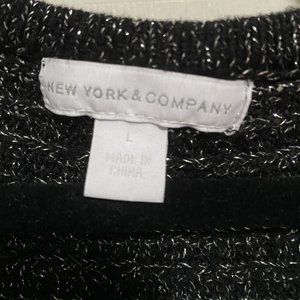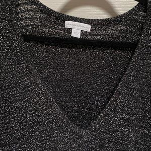 New York & Company Sparkly Black V-Neck Sweater (Large)