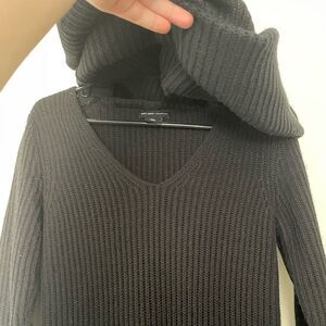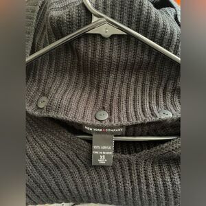 New York & Company Sweater Tunic with Removable Scarf SZ XS Black Preppy Office