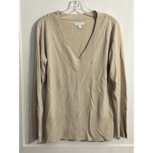 New York & Company Sz XL Sweater V-Neck Pullover Cream Beige Old Money Preppy