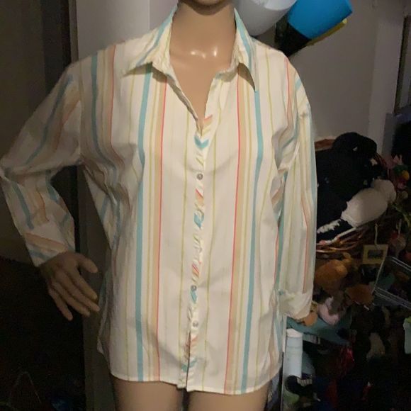 New York & Company Tailored Shirt with 3/4 Button Cuff Sleeves