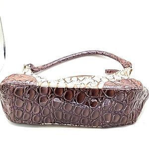 * Embossed patent trim in dark brown faux alligator on each corner, the bottom & the strap