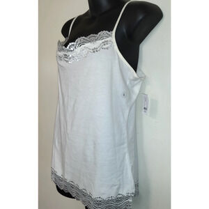 New York & Company Tank Camisole White Top L Silver Lace Adjustable Straps NWT