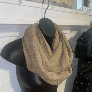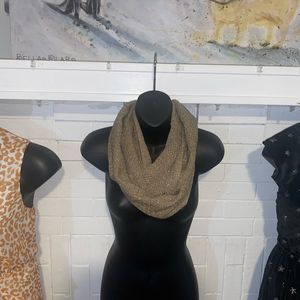 New York & Company Taupe / Beige Infinity Scarf with Metallic Gold thread Detail