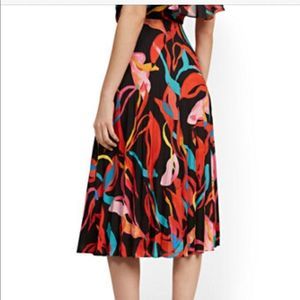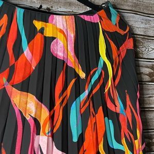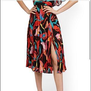 New York & Company Tropical Print Pleated Skirt Red Multicolored