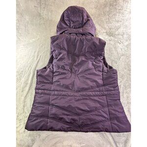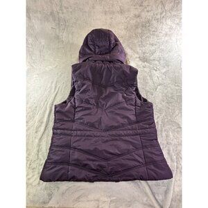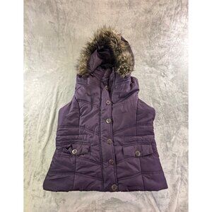 New York & Company Vest Women's Medium Purple Hooded Puffer Vest w/ Faux Fur Tri
