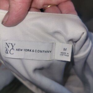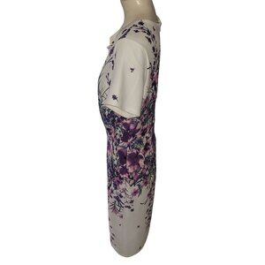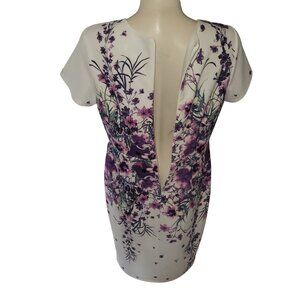 New York & Company White Floral Print Short Sleeve Sheath Dress With V-Neck & Ba
